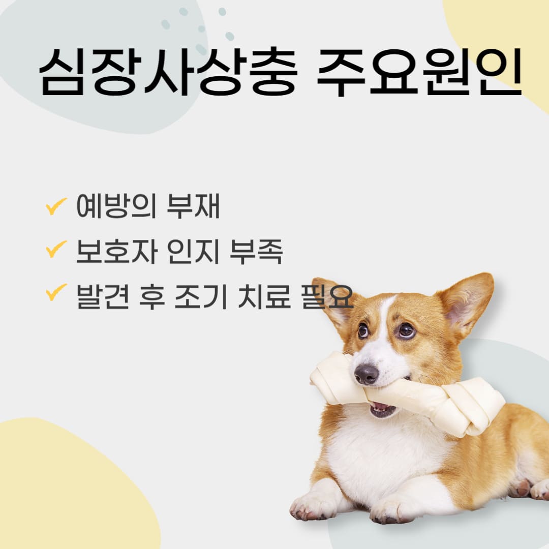 심장사상충은 예방할 수 있는 질병이지만, 예방약을 정기적으로 투여하지 않거나, 감염 위험이 높은 계절에 강아지를 모기에게 노출시키는 경우, 심장사상충에 쉽게 감염될 수 있어요. 특히 예방약을 잊지 않고 꾸준히 사용하는 것이 중요하며, 이를 통해 강아지의 심장과 폐를 보호할 수 있습니다.