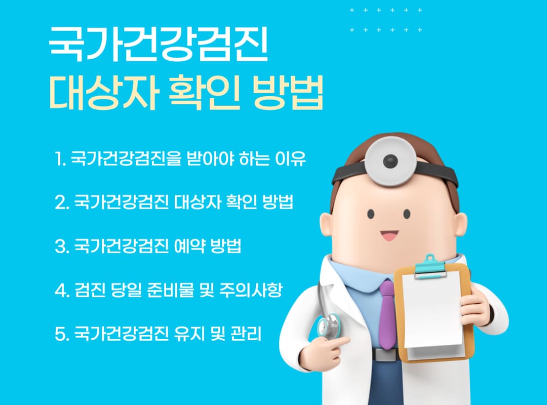 2024년 국가건강검진의 대상자는 특정 조건을 충족하는 국민으로, 아래와 같은 방법으로 대상자 여부를 확인할 수 있습니다: