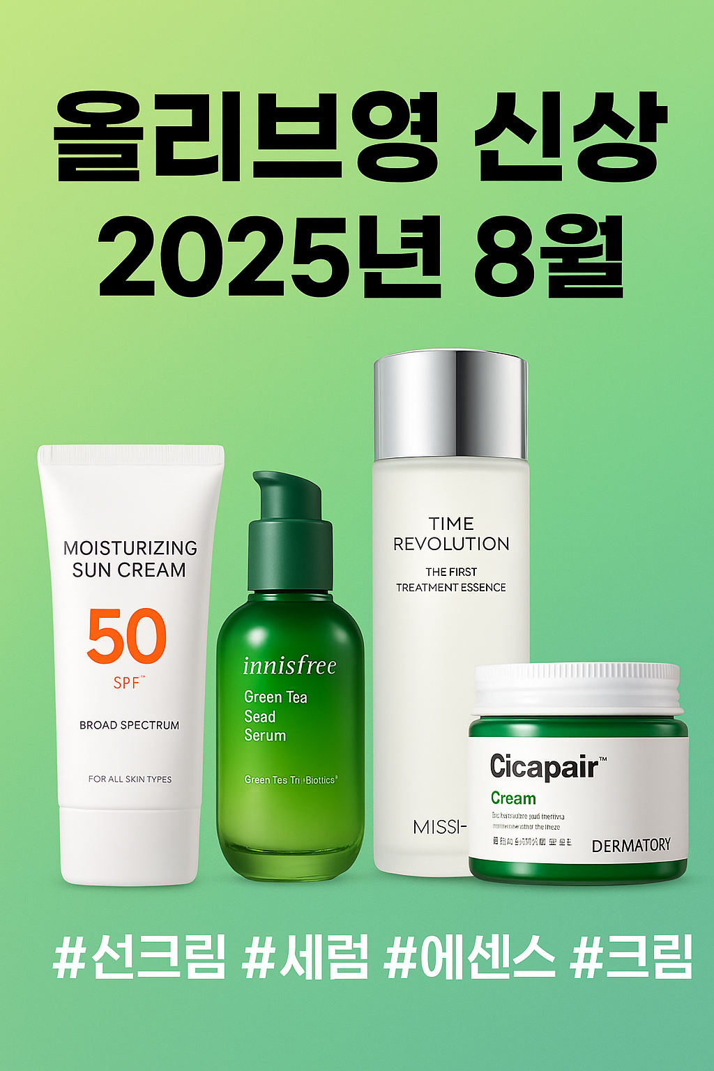 이상으로 2025년 8월 올리브영에서 주목할 만한 신상 제품들을 소개해 드렸습니다. 각 제품은 피부 타입과 필요에 따라 선택하시면 좋을 것 같습니다. 더 자세한 정보나 구매는 올리브영 공식 온라인몰이나 가까운 매장을 방문하시면 확인하실 수 있습니다.