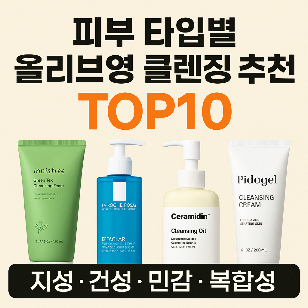피부 관리에서 클렌징은 아무리 강조해도 지나치지 않아요. 특히 올리브영에서 다양한 클렌징 제품을 만날 수 있는 요즘, 내 피부 타입에 맞는 제품을 찾는 것이 무엇보다 중요하죠. 이번 글에서는 피부 타입별로 추천할 수 있는 올리브영 클렌징 제품 TOP10을 소개하고, 각각의 특징과 사용 팁까지 알차게 정리했습니다.